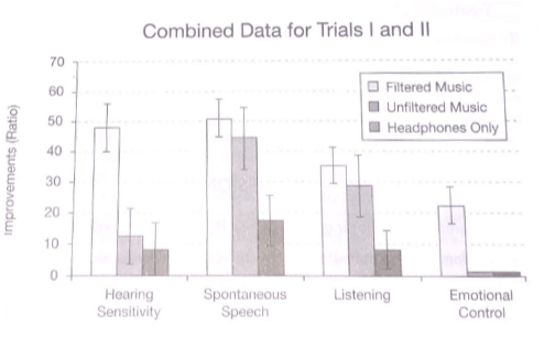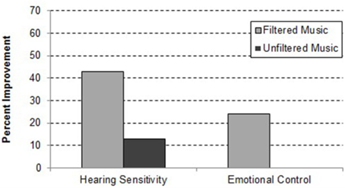 Sensitiviteit van gehoor en de mate van emotionele controle waren hierin significant verbeterd bij het luisteren naar de gefilterde muziek
