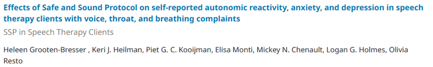 In 2023 publiceert Kawai et al de resultaten van zijn onderzoek naar het effect van SSP bij 6 volwassenen met ASS in het tijdschrift International Journal of Environmental Research and Public Health. Initial Outcomes of the Safe and Sound Protocol on Patients with Autism Spectrum Disorder: Exploratory Pilot Study.