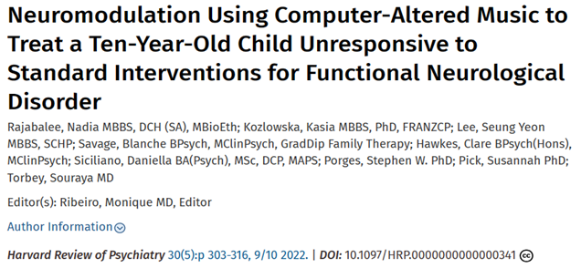 In 2022 wordt in Harvard Review of Psychiatry een casus gepresenteerd van een 10 jarige die na een virusinfectie klachten houdt. Er is sprake van een onstabiele loop, spierzwakte in armen en benen, wazig zien, mompelen, periodieke verwardheid e/o afwezig zijn en aanhoudende hoofdpijn. Er is geen aanwijsbare lichamelijke oorzaak en de klachten verbeteren niet op de gangbare behandeling. Gedurende de 6 maanden die dit in beslag nam verergerde het beeld met duizeligheid, slikklachten, angst, somberheid en een suïcide wens.